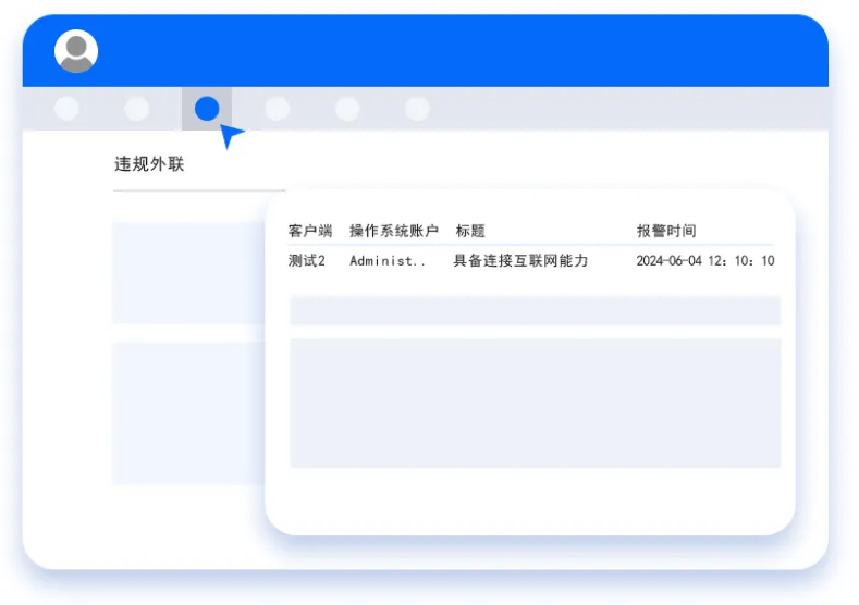 基于客户端实现违规外联检查,从主机层封堵违规外联行为;还提供无客户端模式的违规外联检查手段;支持非法外联检测、实时网络连接检测、非法外联报警。