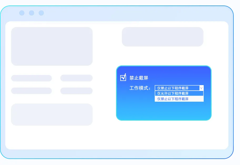对终端用户进行权限控制,如:应用程序控制、禁止关闭系统防火墙、禁止修改IP地址、禁止截取屏幕等。