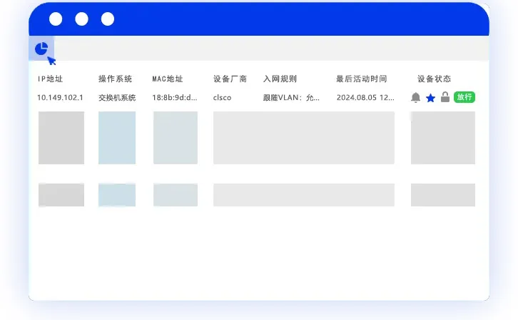 固信准入系统支持精确识别网络内的计算机、移动终端等所有联网设备,运维人员可以实时清晰的知道网络内到底有多少设备,同时提供IP地址池、交换机管理视图、自动生成网络拓扑、全网设备实时监控平台和安全态势图表分析等功能。