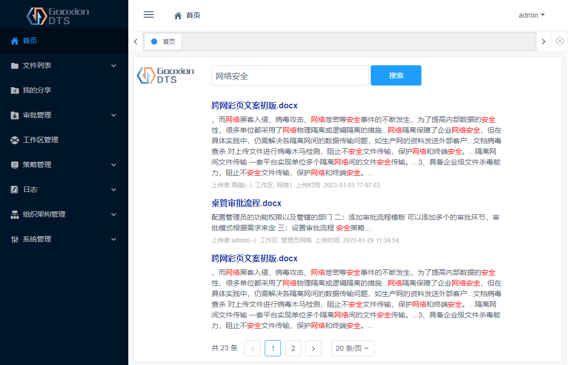 固信跨网文件安全控制系统(简称:GX-DTS)在多网间搭建统一的文件传输通道,让有数据摆渡需求的用户能够更高效、更安全、更便捷的实现跨网文件交互。